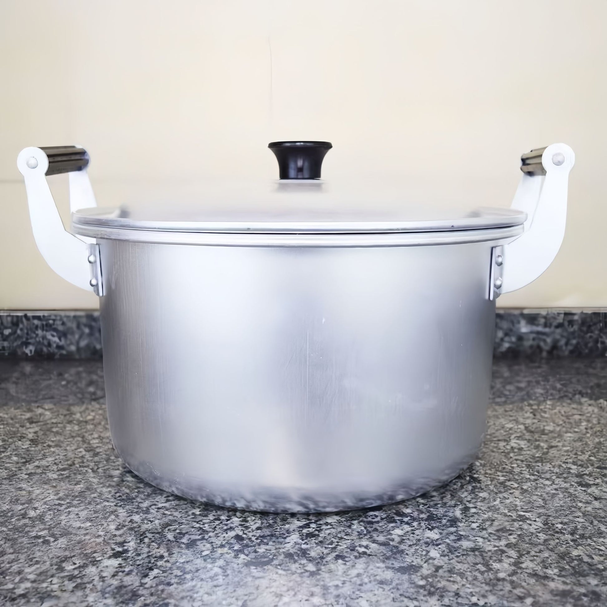 This heavy-duty aluminium pot is designed for large-quantity cooking with even heat distribution and long-lasting durability.